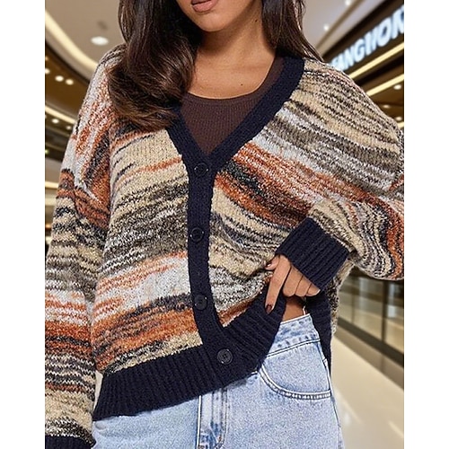 Per donna Felpa Cardigan Vintage Streetwear Casual A righe Scollo a V Bottoni Lavorato a maglia Stampato Manica Lunga Top Regolari Maglia Quotidiano Ferie Uscire Rosso Blu Autunno Inverno