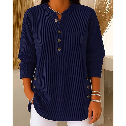 Per donna Felpa Maglione Vintage Streetwear Casual Tinta unica Scollo a V Bottoni Lavorato a maglia Manica Lunga Top Regolari Maglia Quotidiano Ferie Uscire Blu Rosso bordeaux Autunno Inverno