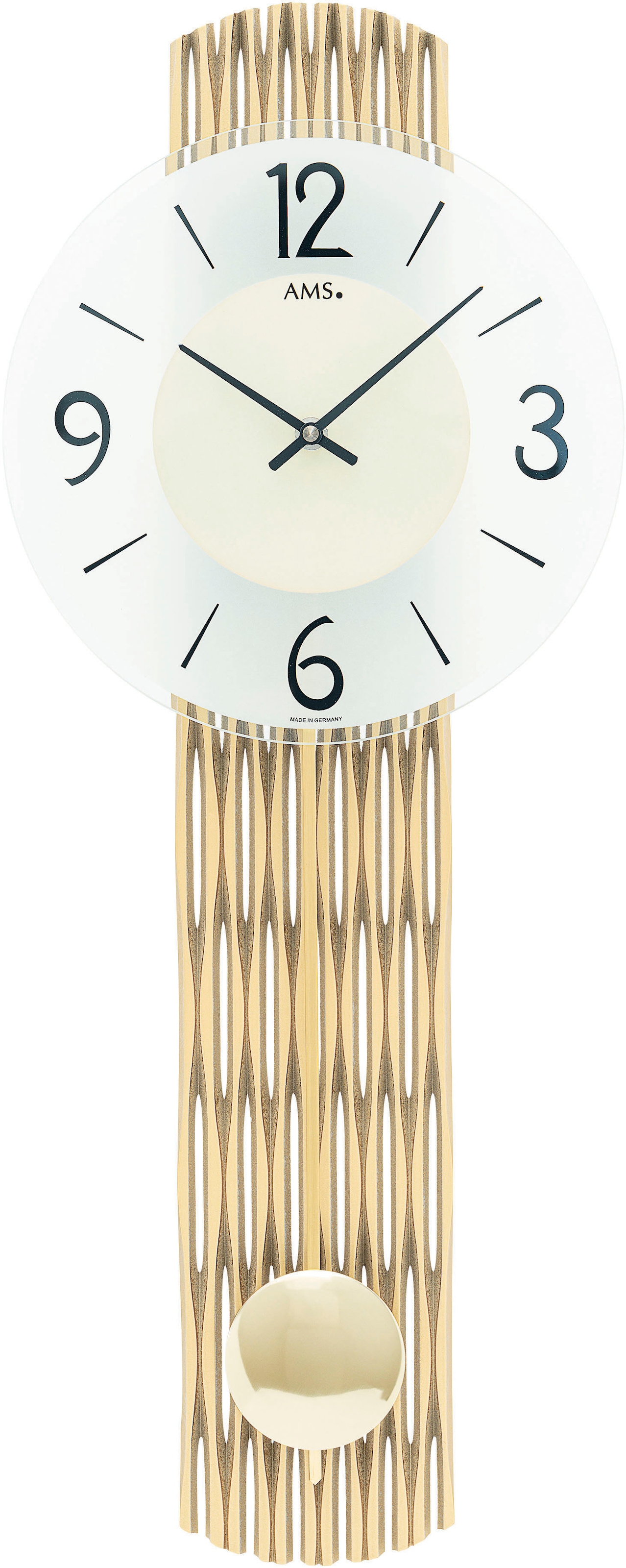 Pendelwanduhr AMS, gold (goldfarben), Wanduhren, B/H/L: 23cm x 6cm x 62cm, Quarzuhr,Holzgehäuse,Esszimmer,Wohnzimmer,Made in Germany