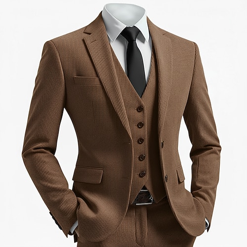 Uomo Affari Casuale Abito in velluto a coste Bavero classico Nero Verde Menta Affari Formale A righe Vestibilità aderente 3 pezzi Monopetto Due Bottoni