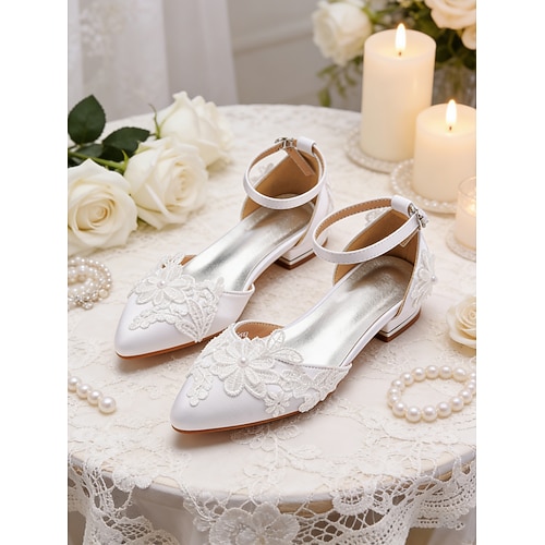 ballerine da donna con cinturino alla caviglia in pizzo bianco, eleganti scarpe da sposa per matrimoni in chiesa