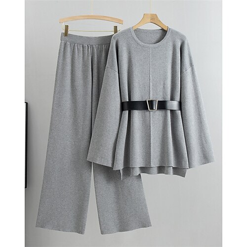 Per donna Felpa Insieme del maglione Streetwear Casual Tinta unica Girocollo Lavorato a maglia Orlo asimmetrico Manica Lunga Top Regolari Maglia Quotidiano Ferie Uscire Nero Cachi Autunno Inverno