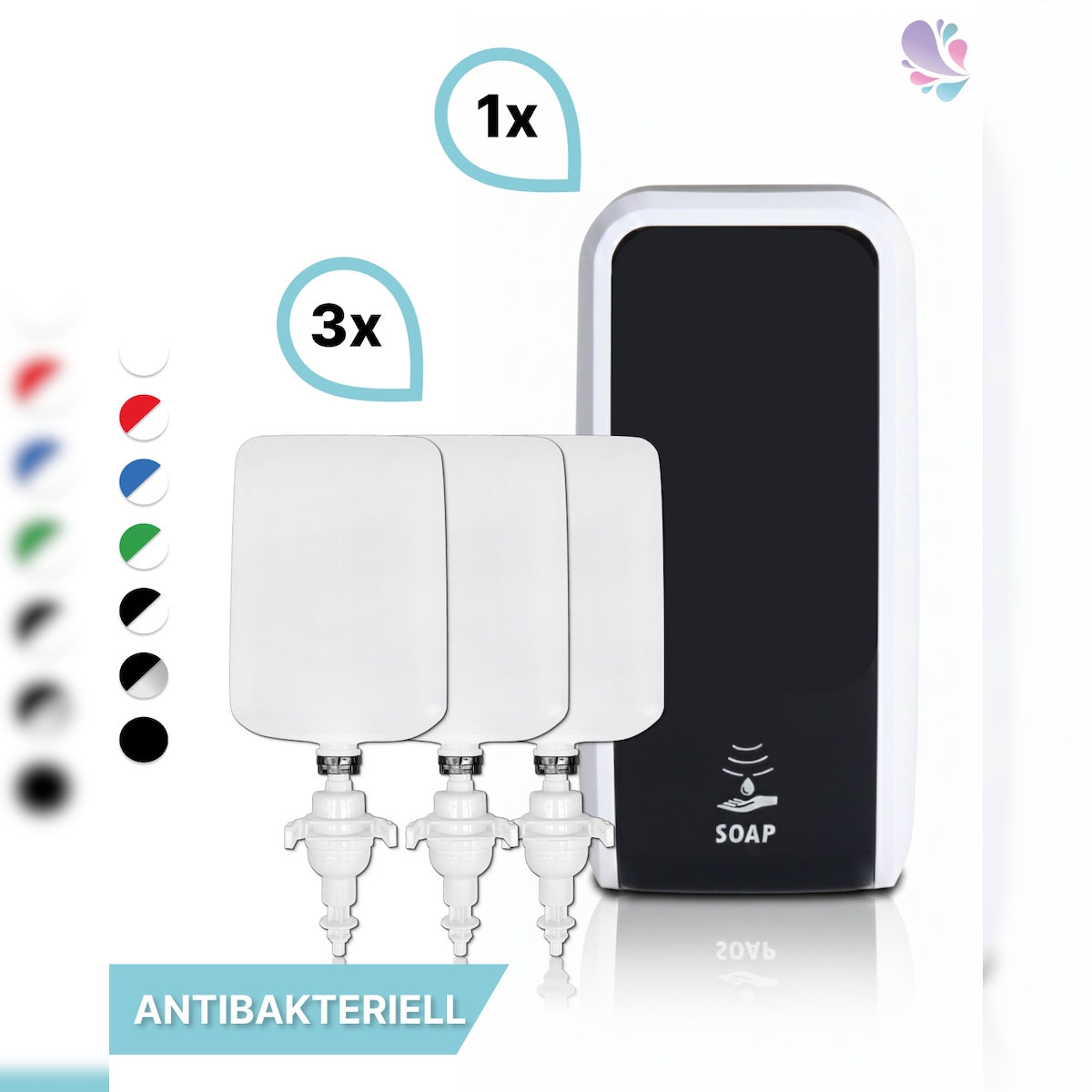 Blanc HYGIENIC SET: Schaumseifenspender SENSOR, berührungslos Blanc Cosmos versch. Farben+3x 1-Liter Schaumseife antibakteriell - PRODUKTSET : Farbe - Schwarz / Wei