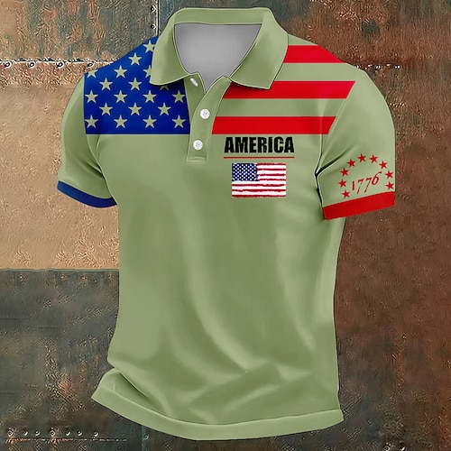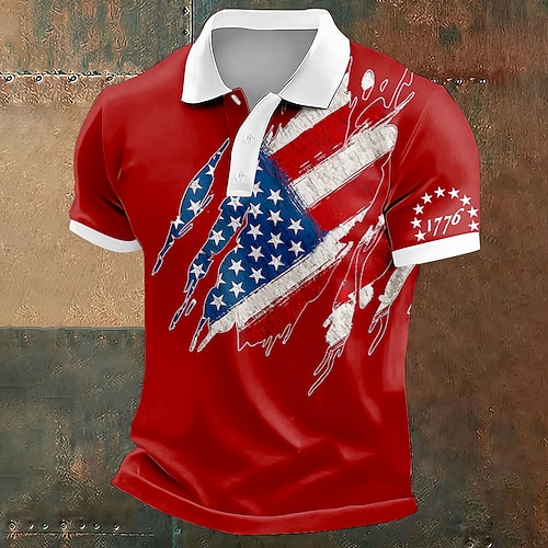 Giorno dell'Indipendenza Americana Per uomo Bandiera Americana Polo Manica Corta Magliette polo Bavero Casual Athleisure Abbigliamento quotidiano Abito da festa Stampa 3D Bottoni Primavera Blu Nero