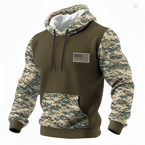 Felpa con cappuccio tattica da uomo con bandiera americana, mimetica digitale, patchwork, verde militare, militare, patriottica, con cappuccio, abbigliamento, abbigliamento s m l xl xxl xxxl