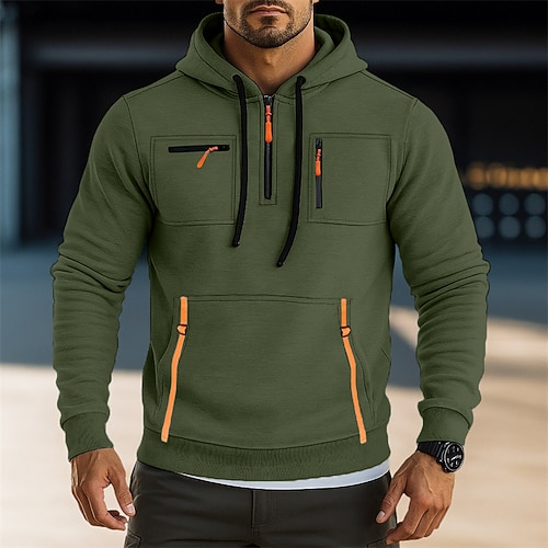Per uomo Felpa con cappuccio Felpa con cappuccio abbottonata Felpa con cappuccio in pile Felpa con cappuccio tattica Nero Borgogna Blu marino Blu Cachi Con Cappuccio Semplice Multi-tasche Sport
