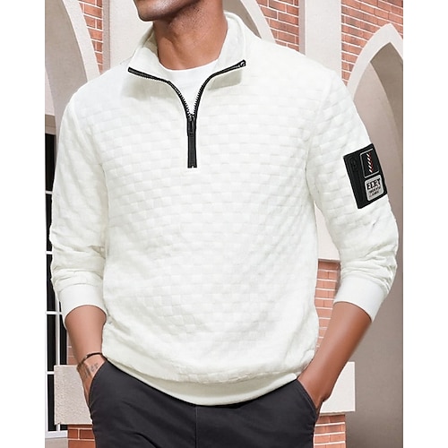 Per uomo Maglia Felpa in pile Maglione Felpa con zip corta Nero Bianco Blu marino Caffè Mezza zip Semplice Jacquard Sport Outdoor Casuale Quotidiano Streetwear Essenziale Casual Autunno Inverno