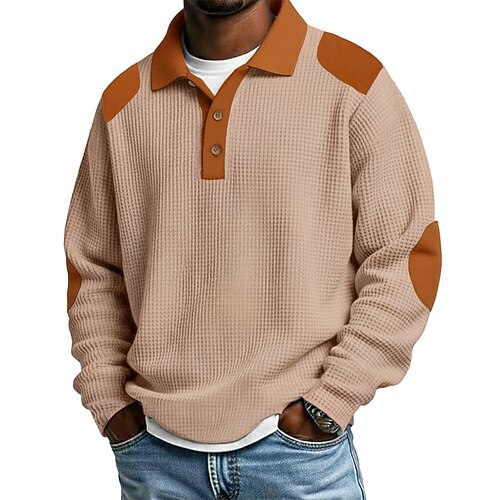 Per uomo Geometrico Blocco di colori Maglia Henley a nido d'ape Stile casual Stile classico Manica Lunga Moda Designer Essenziale All'aperto Casuale Quotidiano Primavera Autunno Tutte le stagioni