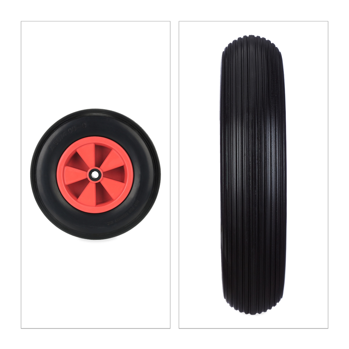 Relaxdays Schubkarrenrad 4.80/4.00-8, Vollgummirad mit Kunststofffelge, bis 100 kg, Ersatzrad pannensicher, schwarz/rot