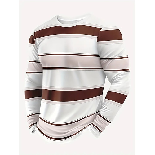 Per uomo Maglietta Camicia a Maniche Lunghe Manica Lunga Girocollo Primavera Autunno A righe Moda Designer Blocco di colore Vacanza Streetwear Uscire Marrone Maglietta Top per Uomo
