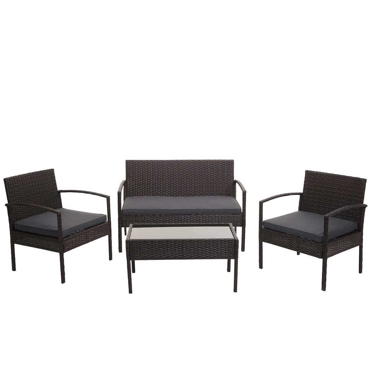 Mendler Poly-Rattan Garnitur HWC-F56, Balkon-/Garten-/Lounge-Set Sitzgruppe ~ braun, Kissen dunkelgrau