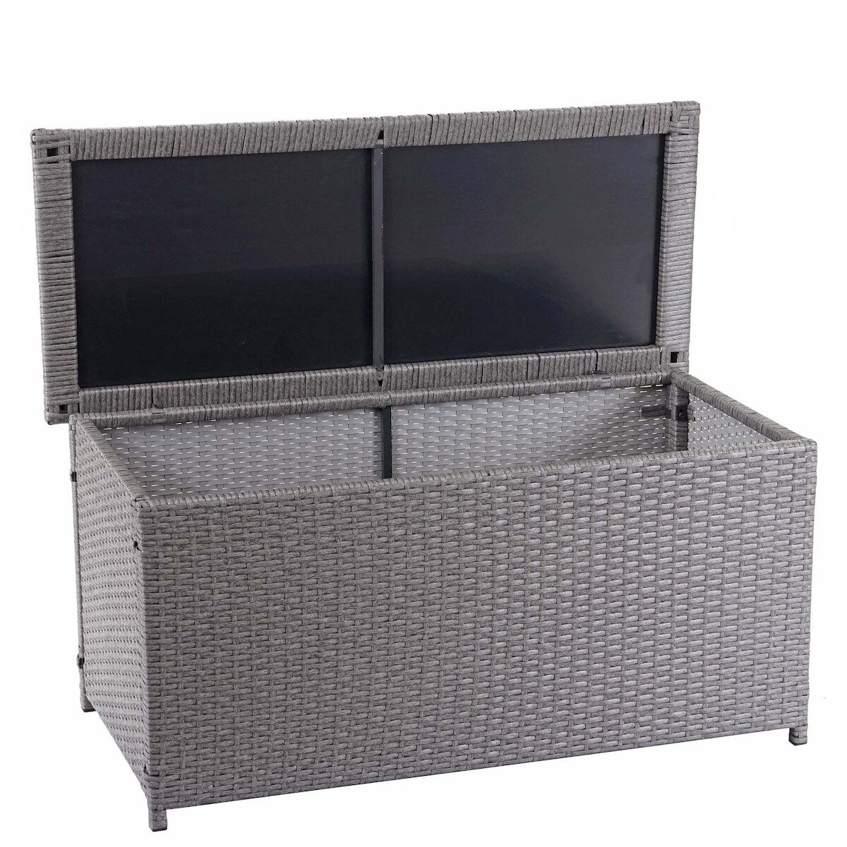 Mendler Poly-Rattan Kissenbox HWC-D88, Gartentruhe Auflagenbox Truhe ~ Basic grau, 63x135x52cm 320l