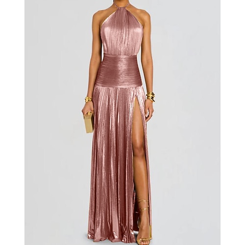 Per donna Abito Lungo Maxi Abito Abito in Raso Vestito da Festa Abito da Cocktail Abito con Collo Allacciato Elegante Moderno Festa serale Feste Occasione speciale Vestibilità regolare Semplice Senza