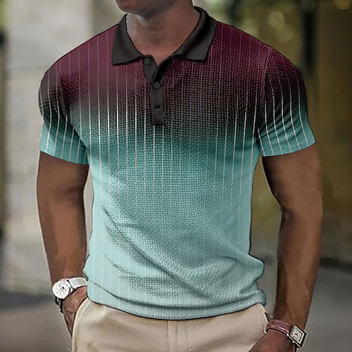 Per uomo A righe Polo con zip Maglia da golf Manica Corta Magliette polo Camicie con Colletto Business Casual Abbigliamento da lavoro Abbigliamento Formale Abbigliamento da festa Stampa 3D Polo con