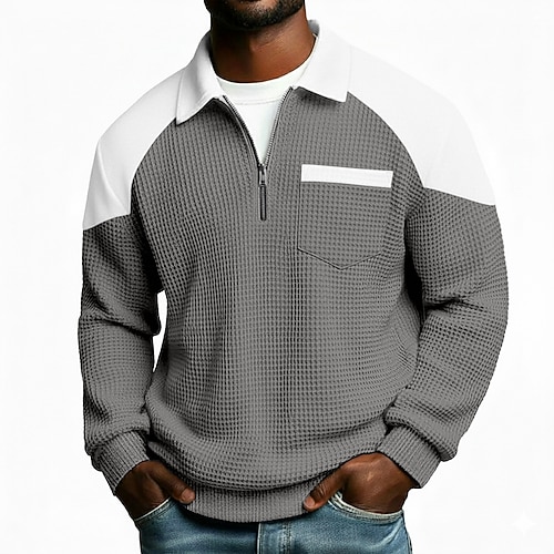 Per uomo Magliette Polo a Nido d'Ape Polo con zip a un quarto All'aperto Casual Zip a un quarto Manica Lunga Moda Moderno Tinta unica Patchwork Blocco di colore Autunno Primavera Autunno Autunno