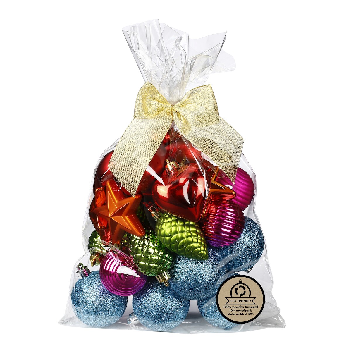 30 Weihnachtskugeln 5-7cm Kunststoff Sterne Zapfen Herzen Mix Christbaumkugeln