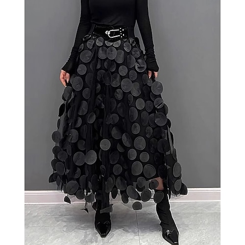 Per donna Gonna Linea A Svasato Tutù Elegante Vintage Moda Midi Misura del girovita medio Gonne A Pois Semplice Patchwork Floreale Stratificato Inelastico Streetwear Casual Ametista Aalbicocca Nero