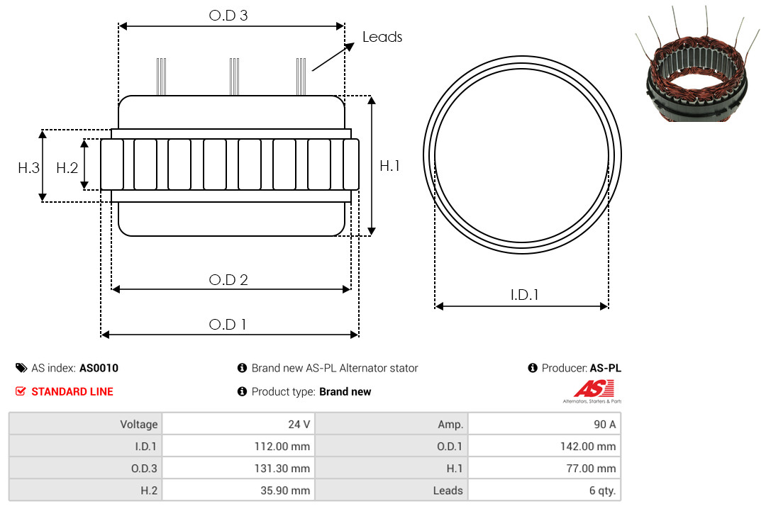 AS-PL Stator, Generator AS0010 Universal 24V 90A für IVECO 42537053
