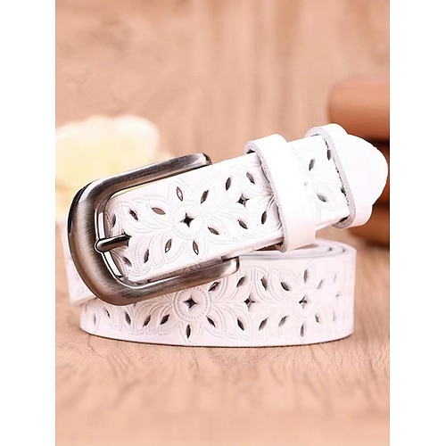 Cintura da donna in vera pelle – design floreale vintage intagliato con fibbia in metallo, accessorio retrò per jeans, abiti e outfit casual