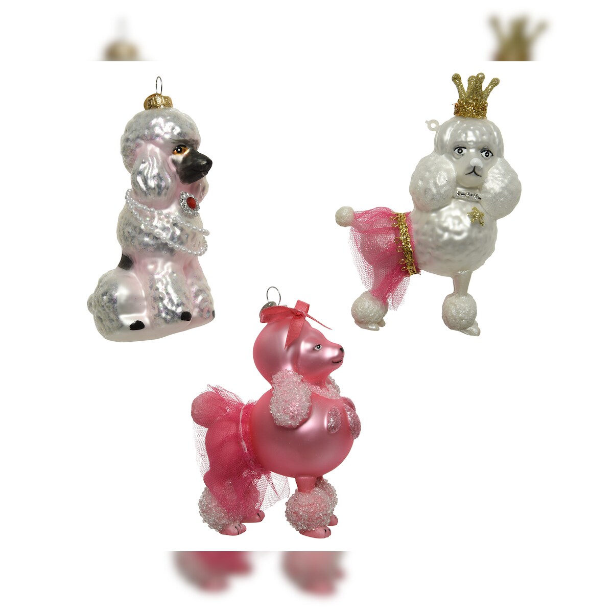1 Christbaumschmuck Glas 13cm Pudel Hund Figur zum Aufhängen - Weihnachtsbaum Anhänger Weihnachten Weihnachtsbaumschmuck mundgeblasen Tiere Rosa Weiß