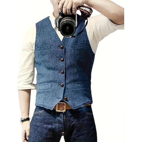 gilet da uomo, gilet da esterno, casual, quotidiano, autunno e inverno, in poliestere, tinta unita, termico, caldo, blazer monopetto, nero, blu, marrone, verde