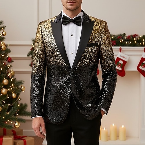 Abito da festa di Natale Giacca Blazer Per uomo Disco Divertente Paillettes Fantasia/motivo Costume originale Adulti Natale Capodanno Festa Sera Festa a tema retrò Cappotto