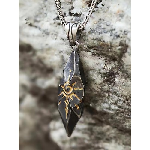 collana con ciondolo totem solare vintage da uomo – catena in metallo ossidato con incisione tribale, gioielli gotici da indossare tutti i giorni e per le feste