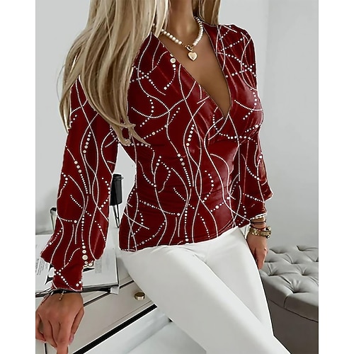Per donna Maglietta Grafico Elegante Moda Manica Lunga Scollo a V Top Regolari Quotidiano Uscire Weekend Patchwork Stampato Vino Estate Primavera