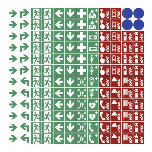 Aufkleber - 144 Piktogramme für Brandschutz u. Fluchtweg gemäß ASR A1.3 (2013), Folie, 8mm