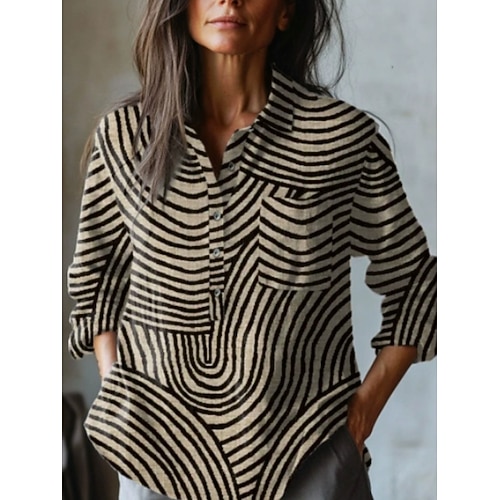 Per donna Camicia A righe Attivo Quotidiano Elegante Manica Lunga Colletto a Camicia Top Regolari Quotidiano Ferie Bottoni Stampato Nero Estate Primavera Autunno