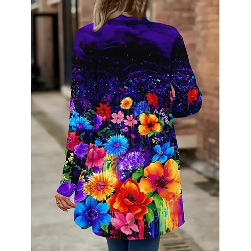Per donna Cappotto Invernale Trench Leggero Confortevole Stampato Aperturaanteriore Vintage Moda Casual Floreale Vacanza Casuale Lungo Senza colletto Vestibilità regolare Manica Lunga Capispalla