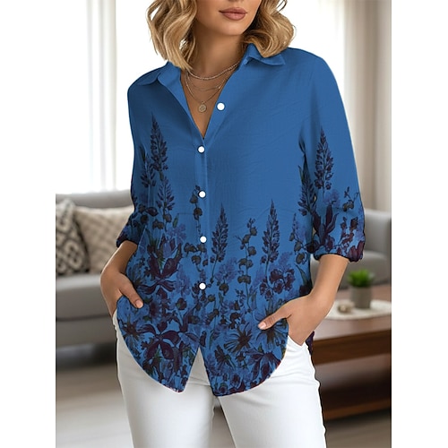 camicia da donna camicetta casual floreale bottoni stampa manica lunga normale top colletto camicia vacanza quotidiano rosa blu viola cachi primaveraamp; autunno