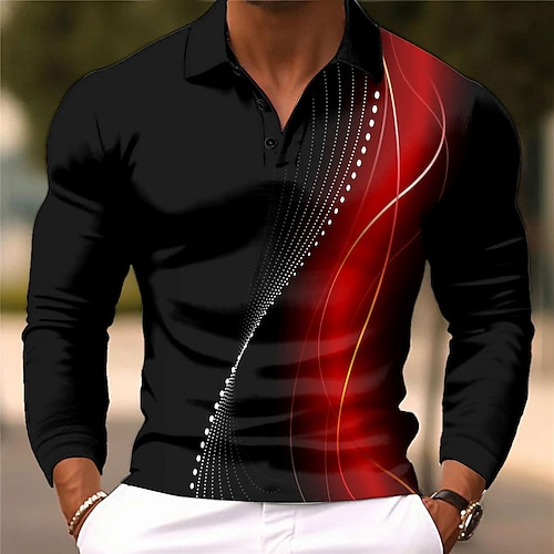 Per uomo Astratto Linea Polo Manica Lunga Magliette polo Bavero Business Casual All'aperto Athleisure Abbigliamento quotidiano Stampa 3D Bottoni Primavera Autunno Inverno Nero Rosso Blu