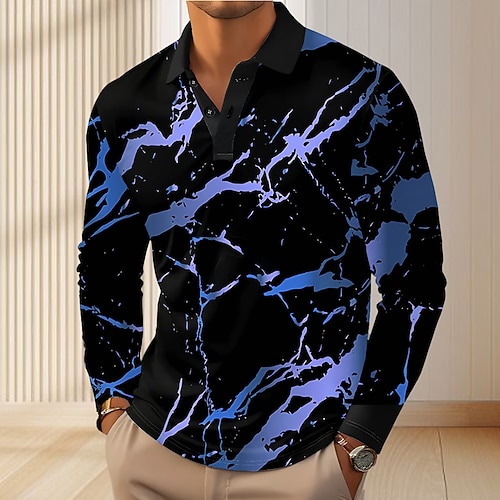 Per uomo Astratto Polo Manica Lunga Magliette polo Bavero Vintage Casual Streetwear Athleisure Abbigliamento quotidiano Stampa 3D Bottoni Primavera Autunno Inverno Blu Marrone Grigio