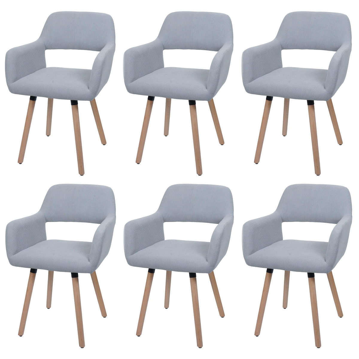 Mendler 6er-Set Esszimmerstuhl HWC-A50 II, Stuhl Küchenstuhl Polsterstuhl, Holz Stoff/Textil Cord (400g/m²) FSC® ~ hellgrau