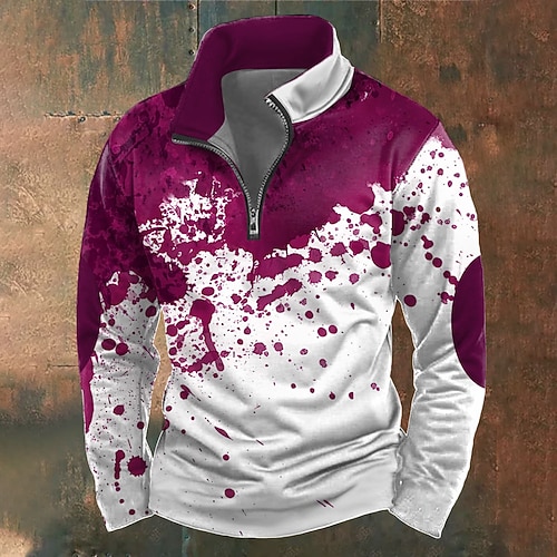 Per uomo Schizzi di sangue Macchie di sangue Felpa Casual Manica Lunga Collo Alto Feste Ferie Club Rosso Blu Viola Verde Rosso rosa Cerniera Zip a un quarto Autunno Inverno progettista S M L XL XXL
