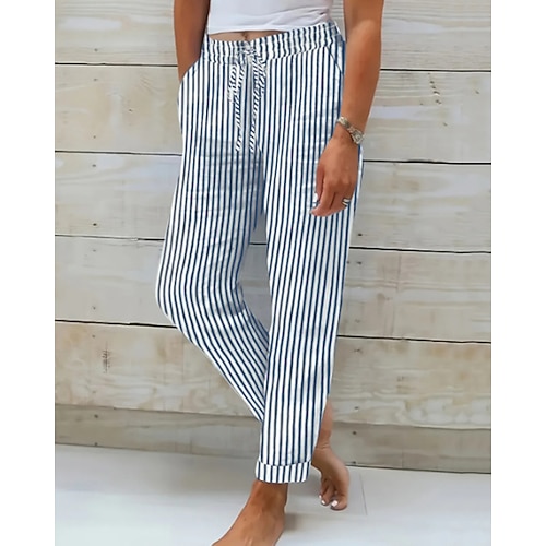 Per donna Finto cotone e lino Pantaloni Eleganti Moda Streetwear Comfort Lunghezza alla caviglia Misura del girovita medio A righe Elastico in vita Comodo All'aperto Confortevole Streetwear