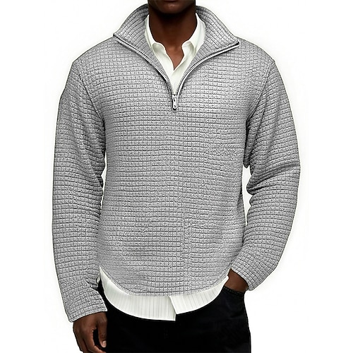 Per uomo Magliette Polo a Nido d'Ape Polo con zip a un quarto All'aperto Casual Zip a un quarto Manica Lunga Moda Moderno Tinta unica Blocco di colore Lavorato a maglia Primavera Primavera Autunno