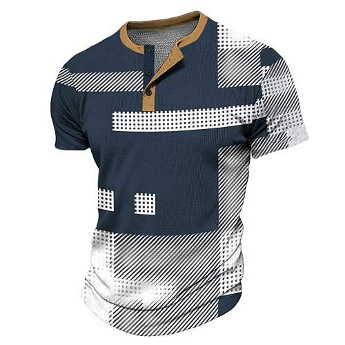 Per uomo Geometria Camicia Henley Maglietta Waffle Manica corta Stampa 3D Giornaliero Affari casual Informale Giornaliero Primavera estate Nero Blu Marrone Verde Henley Maglietta Henley