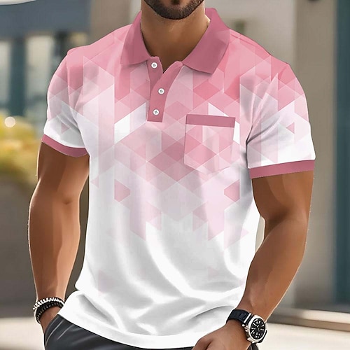 Per uomo Geometrico Magliette Polo a Nido d'Ape Manica Corta Magliette polo Camicie con Colletto Business Casual Athleisure Abbigliamento da lavoro Abbigliamento quotidiano Stampa 3D Bottoni Estate