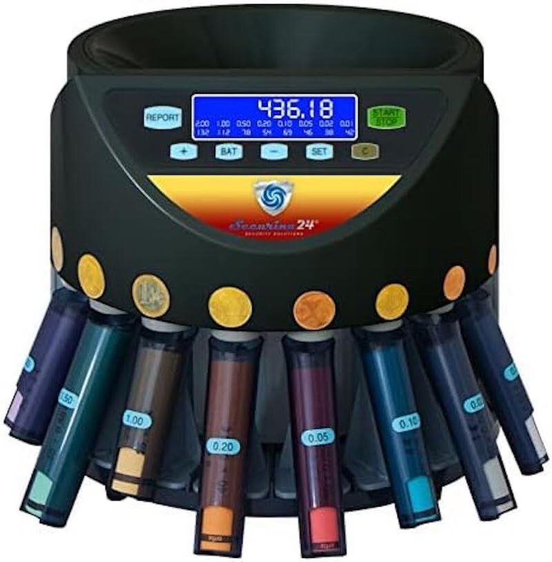 Securina24 Münzzähler Münzählmaschine SR-1200 LC mit Abhülsung und Starterpaket Münzhülsen