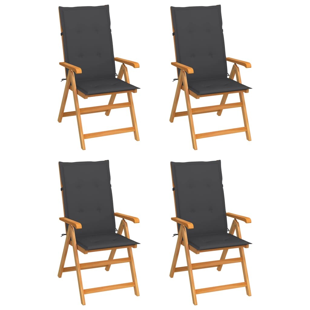 vidaXL 4x Teak Massiv Gartenstuhl mit Anthrazit Kissen Klappbar Hochlehner Klappstuhl Gartensessel Holzstuhl Stuhl Stühle Gartenstühle