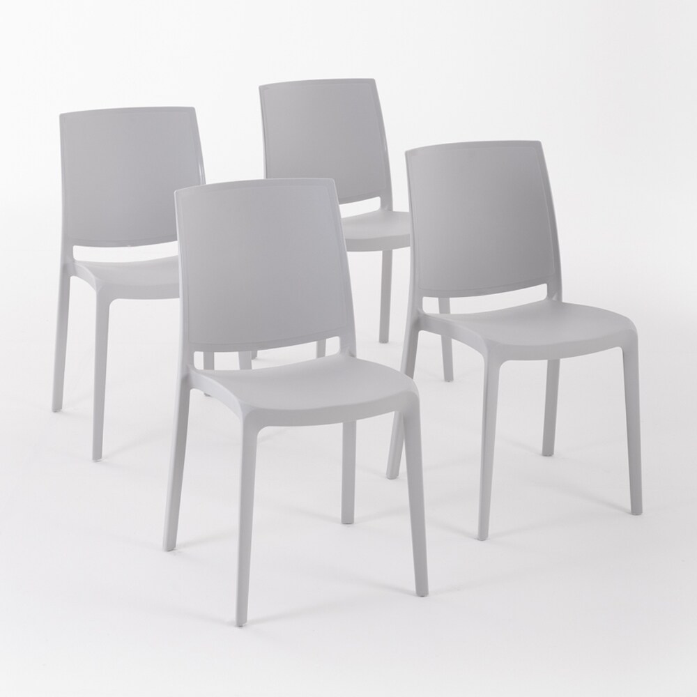 RATTATAN 4er-Set stapelbare Stühle aus Polypropylen mit Glasfasern für Außenbereich und Garten, Bar und Restaurant, Küche modernes Design - CARMEN - Hellgrau