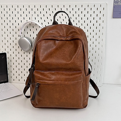 Zaino vintage in similpelle per studenti – zaino scolastico marrone retrò con portachiavi in peluche, zaino di grande capacità per ragazze adolescenti e per il ritorno a scuola