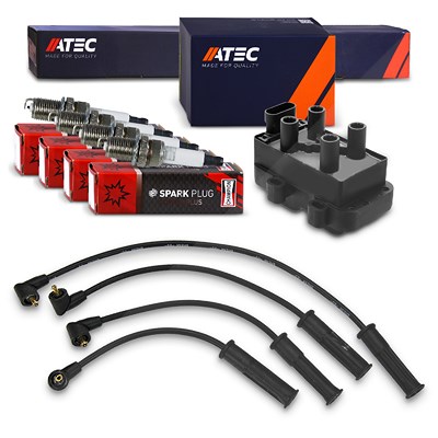 Atec Zündspule + Zündkabelsatz + 4x Zündkerze [Hersteller-Nr. 41108883] für Renault, Dacia