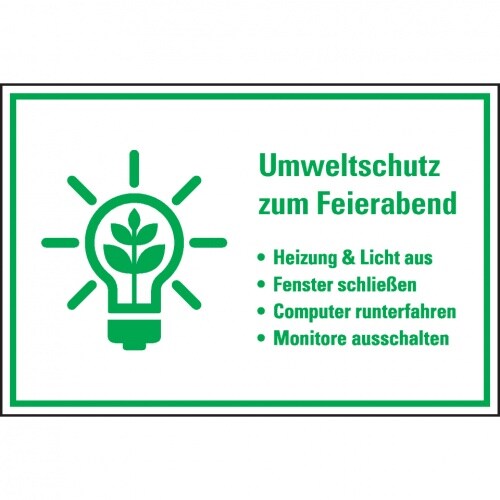 Schild I Hinweis-Kombischild Umweltschutz zum Feierabend..., Kunststoff, 300x200mm