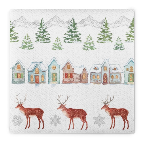 Airlaid Serviette Sandy, 40 x 40 cm, 50 Stück - Mank - Weihnachtsserviette Weihnachtsdorf Hirsche