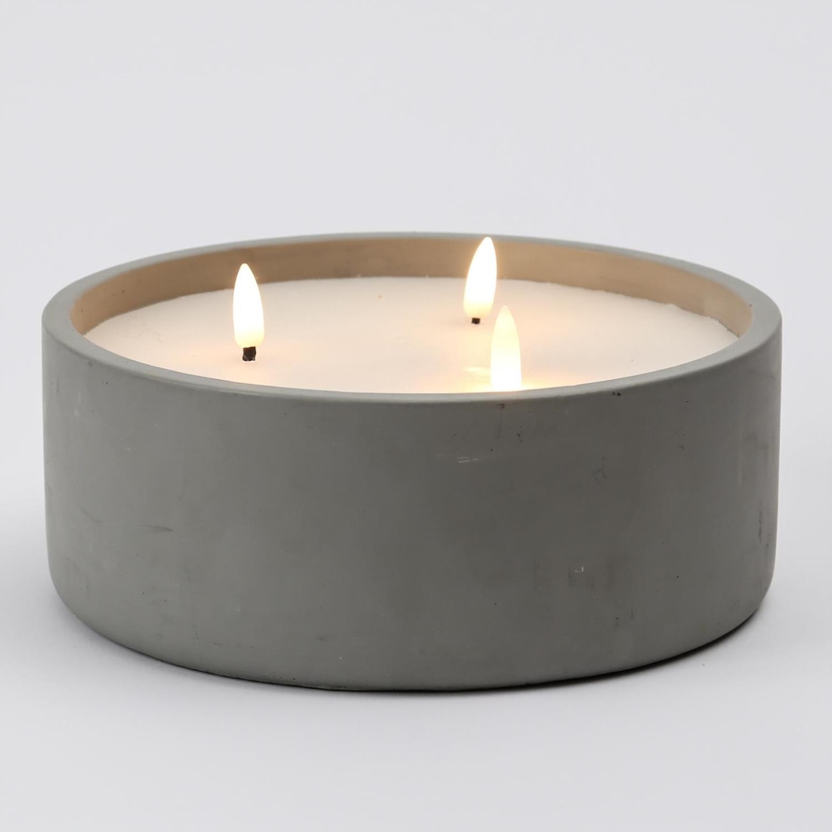 XXL LED Kerze in Betonoptik Zement Wachs 3 Docht Flamme Timer D: 20cm grau