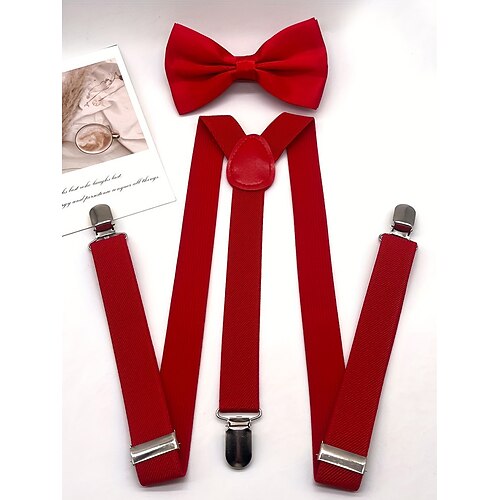 set di bretelle e papillon in poliestere da uomo, vari colori, perfetti per Natale e eventi formali
