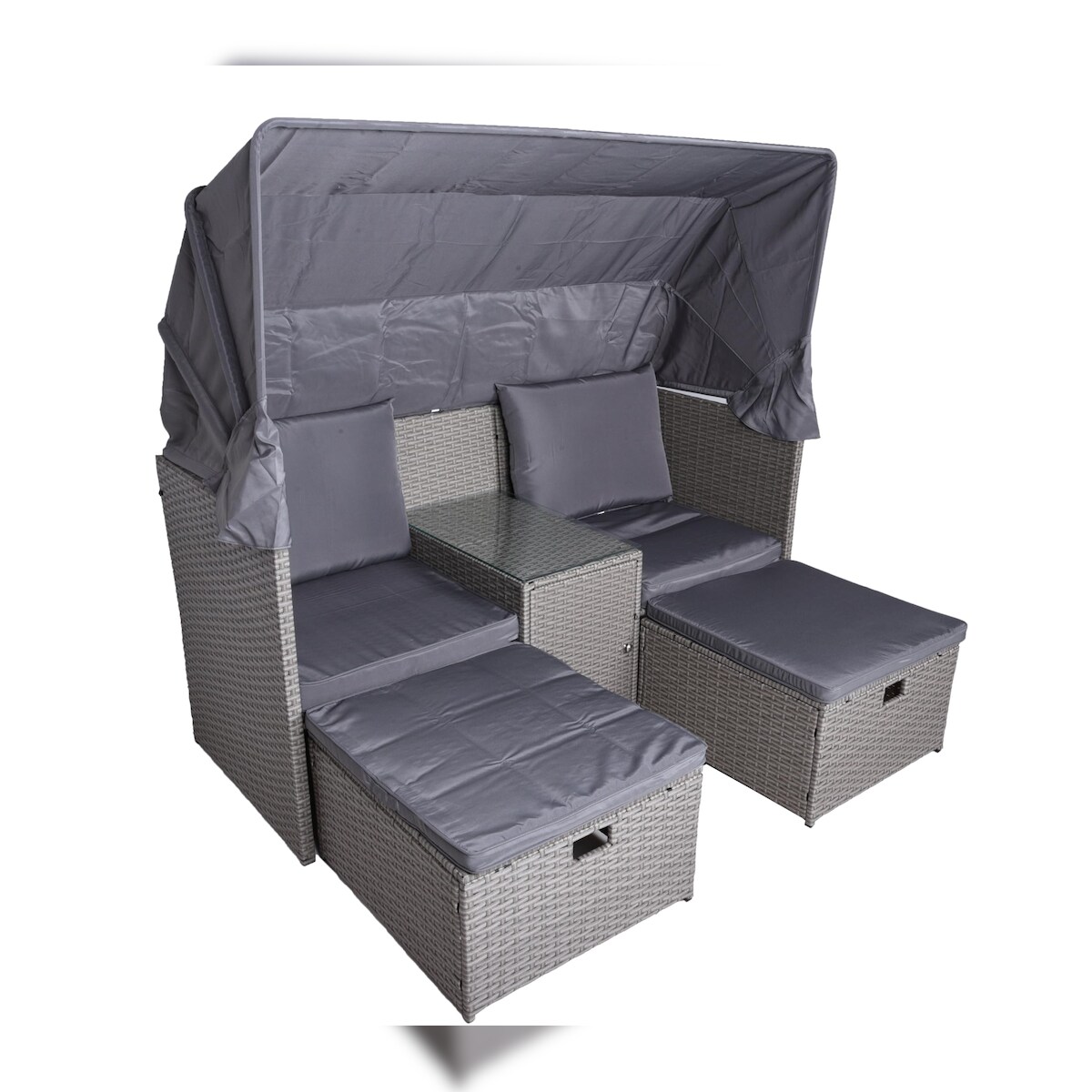 DELUKE Gartenmuschel MAINZ mit Hocker Beistelltisch Sonnendach - Kunststoff, Grau | Sonneninsel Outdoor Gartensofa mit Dach Garten Pool